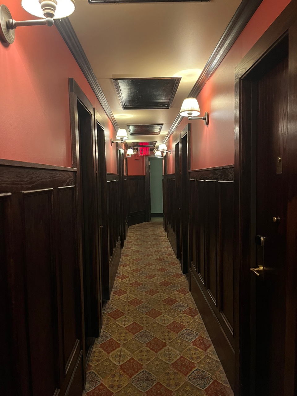 체크인을 하고 객실 키를 받아서 입실했다. 방 크기는 정~말 작다. 고시원 생각하면 될 듯. 오른쪽에 침대가 있고 왼쪽 벽은 큰 거울로 되어있다. 앞부분에 창문이 있고 책상까지는 아니지만 작은 물건들을 놓을 수 있는 공간이 있다. 침대 아래에 서랍이 있고 침대 위에도 공간이 있어서 물건을 놓을 수 있다. 내가 미국 여행을 갔던 때는 11월이었는데 이상하게 날씨가 엄청 더웠다. 침대 기준으로 정면 벽 위쪽에 선풍기가 있어서 잠깐잠깐 잘 이용했다.