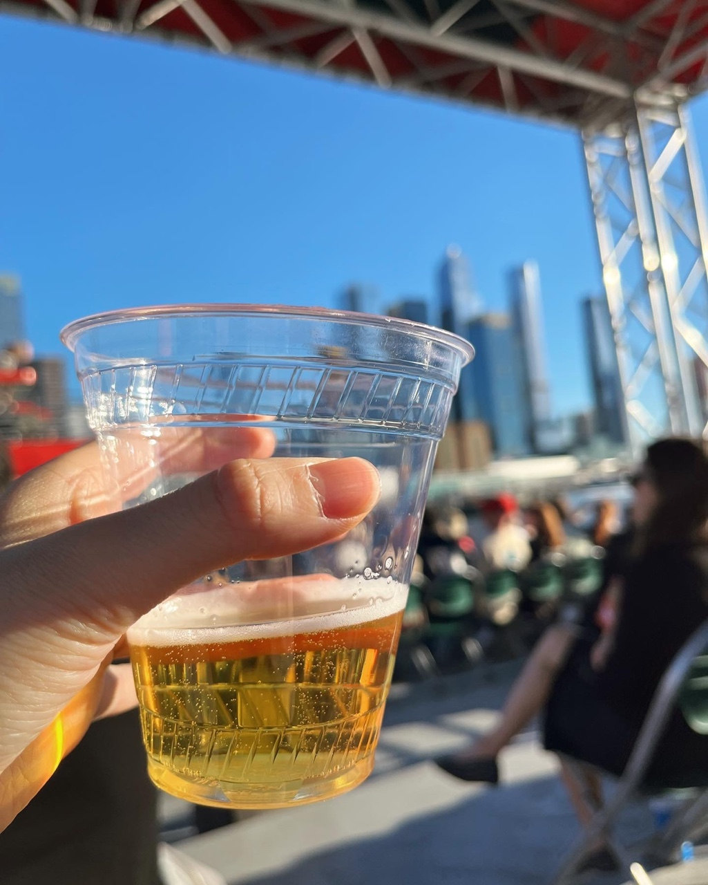 사진 찍기 좋은 자리를 맡으려면 시간보다 일찍와서 탑승해야 한다. 시간 딱 맞춰가니 가운데 몇 자리밖에 남지 않았었다. 크루즈 안에 beverage와 snack을 판매하고 있다. 비쌀 건 알았지만 그래도 기분을 내고 싶어서 맥주 한 캔을 사서 갑판으로 올라갔다. 생각보다 사람들이 많이 있어서 놀랐다. 겨우 자리를 잡고 맥주를 마시며 뉴욕의 랜드마크들을 감상했다.