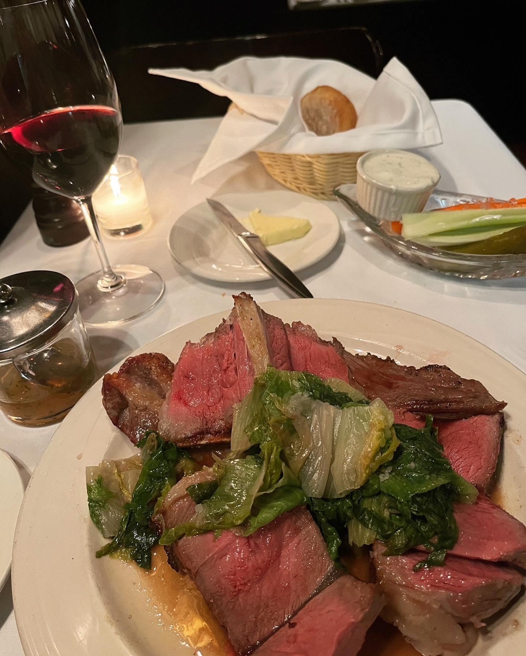 탑 오브더 락에서 뉴욕 야경을 보고 Keens Steak House에서 나 자신에게 호화로운 dinner를 선물했다. 킨즈 스테이크 하우스는 탑 오브 더 락에서 걸어서 10분 정도 거리에 있었고 미리 예약을 해놓은 상태였다. 들어가서 booking name을 말하니 예약자 정보가 없다는 것. 알고 보니 다른 레스토랑을 예약한^^; 또 허당 짓을.. 다행히 10분 정도 웨이팅 한 후 테이블을 받을 수 있었다.