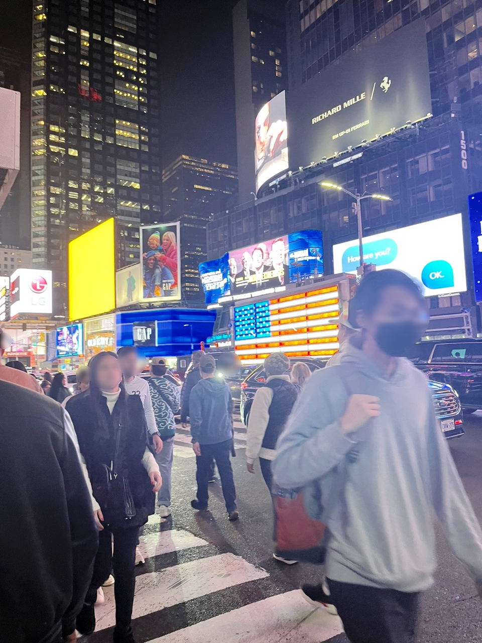 뉴욕 여행 갔던 날 날씨가 너무 좋았는데 뉴욕에 도착하자마자 피곤함에도 불구하고 벨벳 트레이닝복 차림에 에어팟을 끼고 타임스퀘어 부근을 막 걸어 다녔다. '내가 뉴욕에 있구나!'를 제대로 느꼈던 moment였다. 더불어 feel freedom...