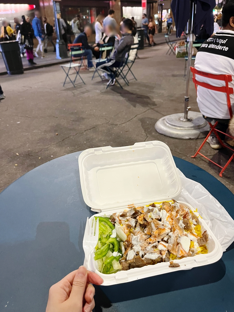 타임스퀘어에 많은 맛집들이 있지만 즉흥적으로 푸드트럭에서 스트리트 푸드를 사서 광장 같은 공간에 있는 야외 테이블에서 저녁을 먹었다.